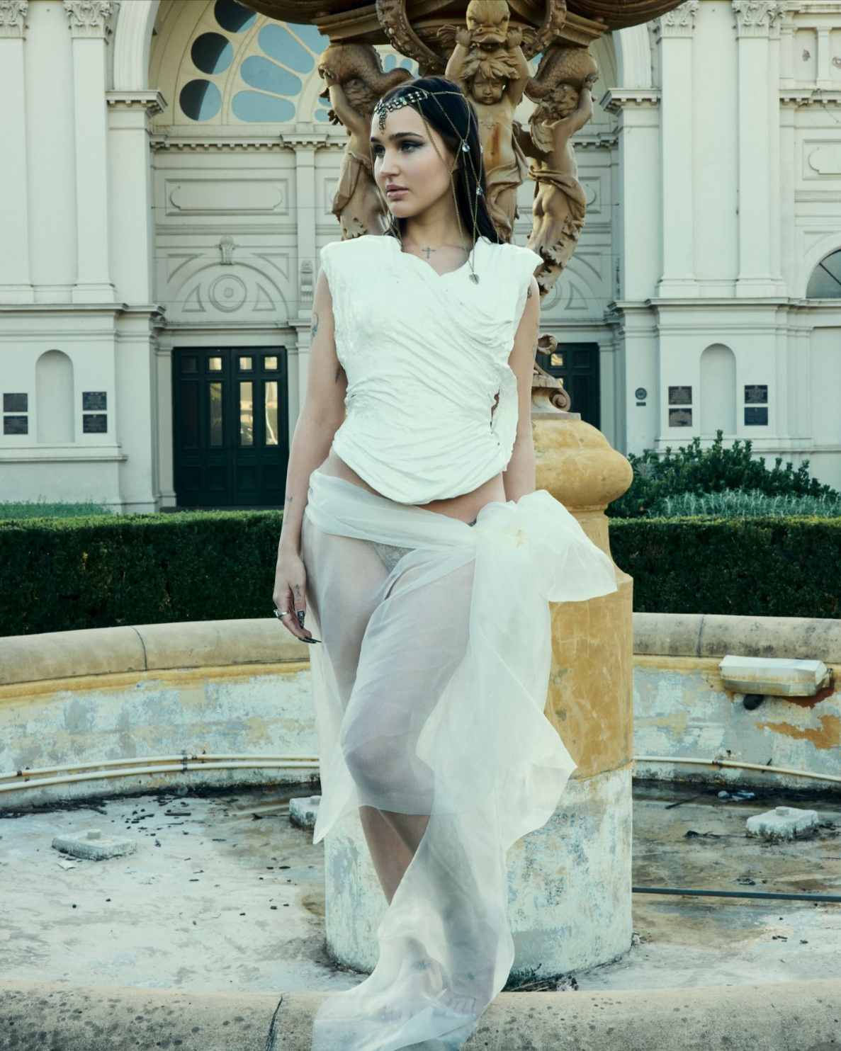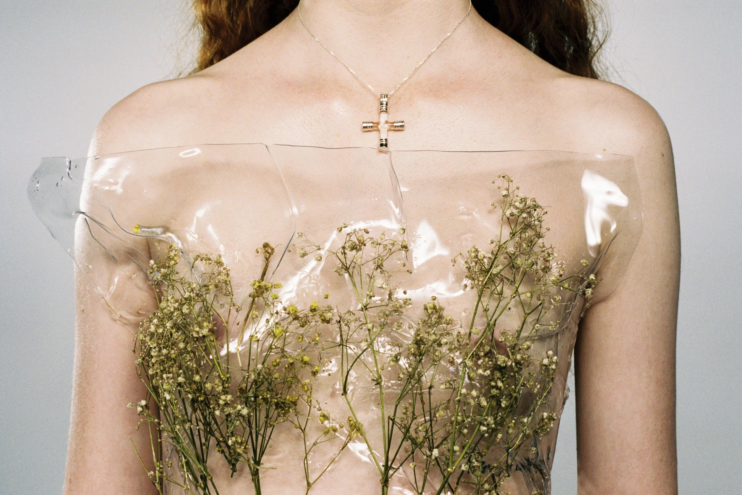 The duality of freedom and captivity. Both a power and a trap. Femininity has been seen throughout history as powerful, liberated yet objectified and limited. Somewhere stuck in the middle, I deconstructed my own constructed idea of goddess. Creating classical drapery silhouettes with unconventional materials. Integrating flow with restriction.